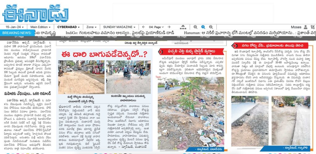 15-Jan-24: Issue Covered by Eenadu Newspaper